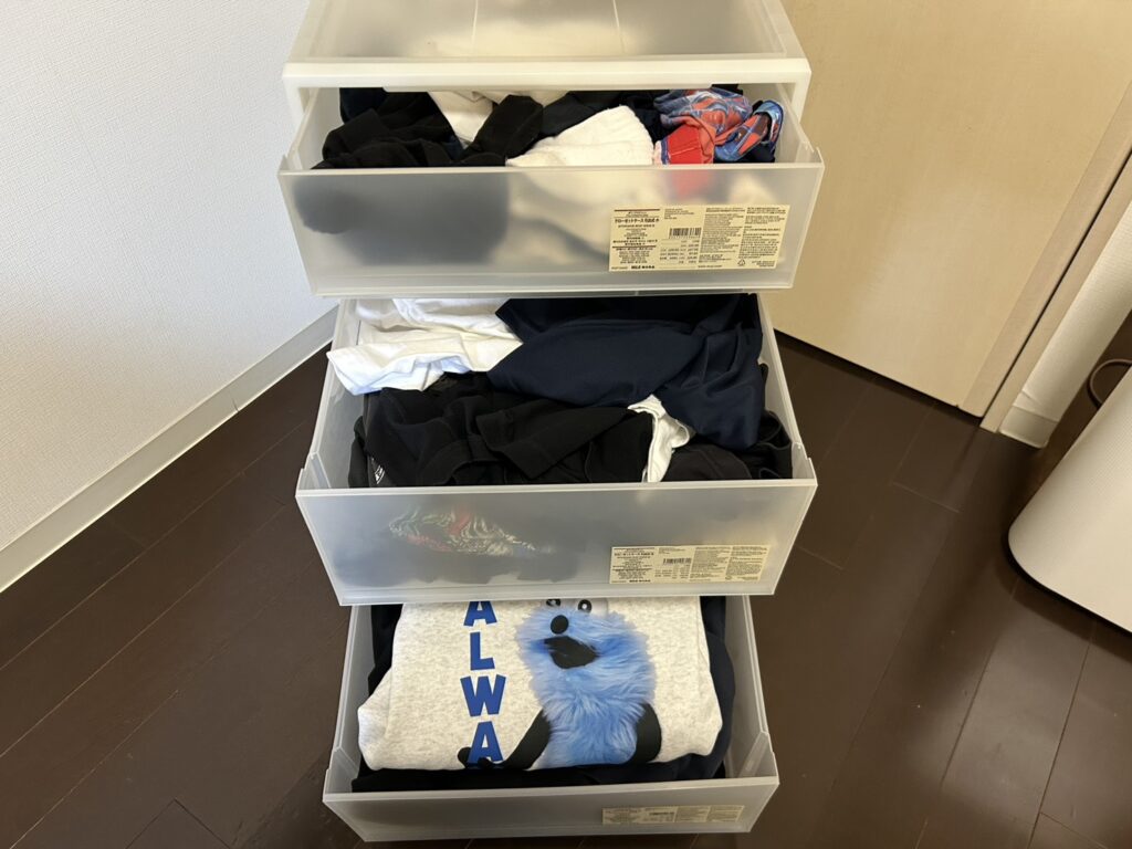 今回は残りの下着、Tシャツ、スウェットなどの収納方法をどのようにしているのか紹介しているので以下参考にしていただければ幸いです。