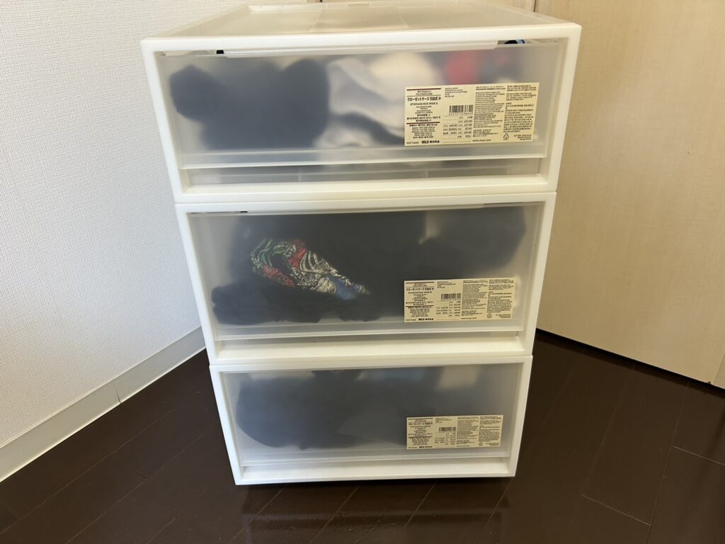 私はこのように、一番上のケースに、パンツ・靴下・インナーなどの小物を収納しており