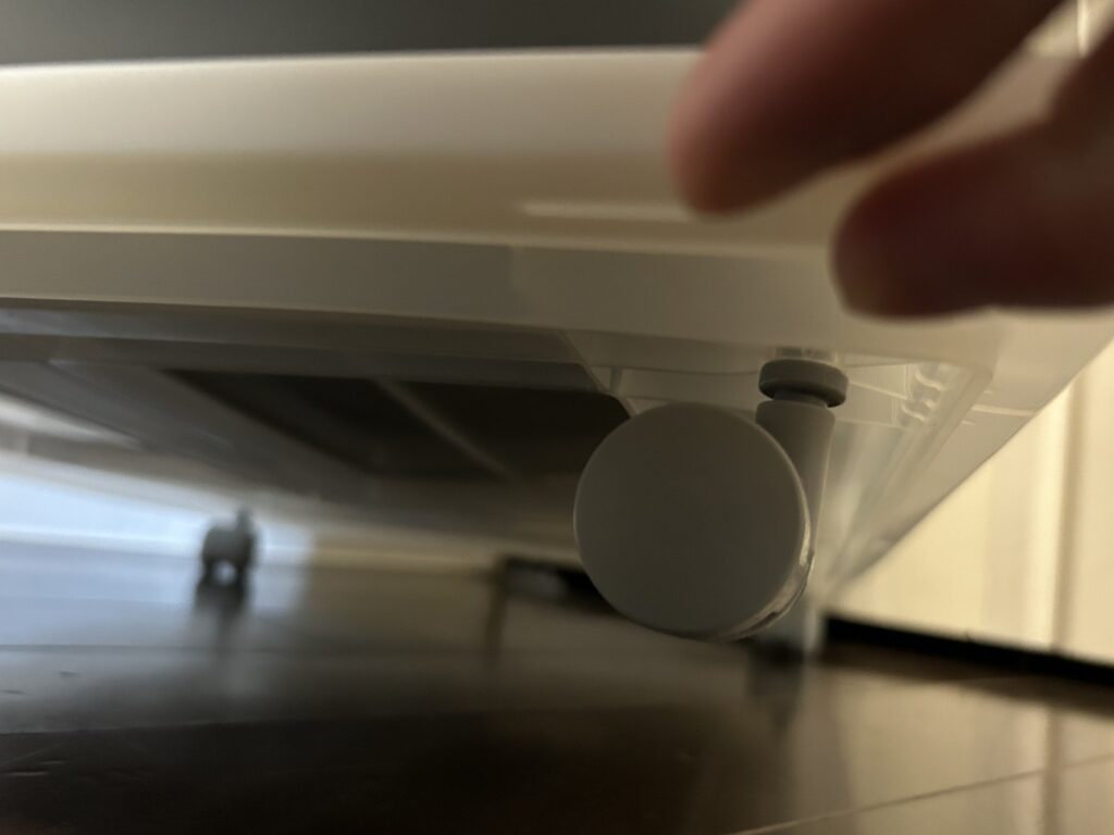 それとこのクローゼットケースは一番下に別売のキャスターを取り付けることができる使用になっています。