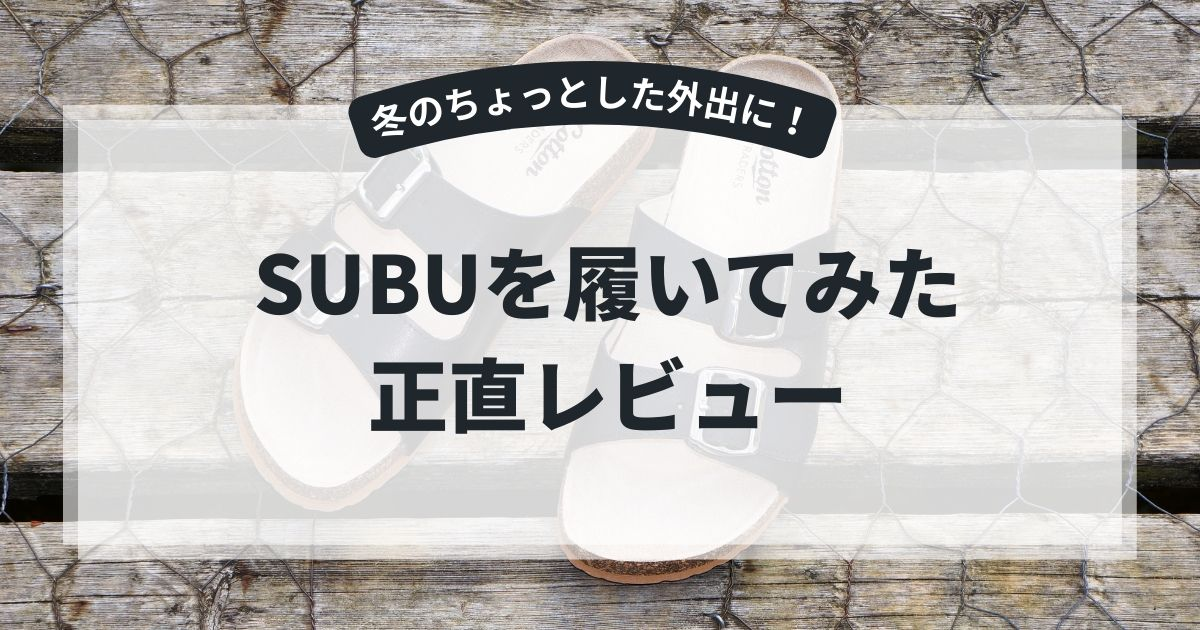 春夏は普通のサンダルで、秋冬はこのSUBUのサンダルを履くことで一年中ちょっとした外出に対応できるようになります。その季節ごとに片方のサンダルは出しっぱなしにしているので靴箱も1つ分で済みます!このサンダルのおかげでちょっとした買い物行くときに憂鬱な気持ちや靴下を履かなくてよいという楽さを手に入れられたのでとても満足しています。