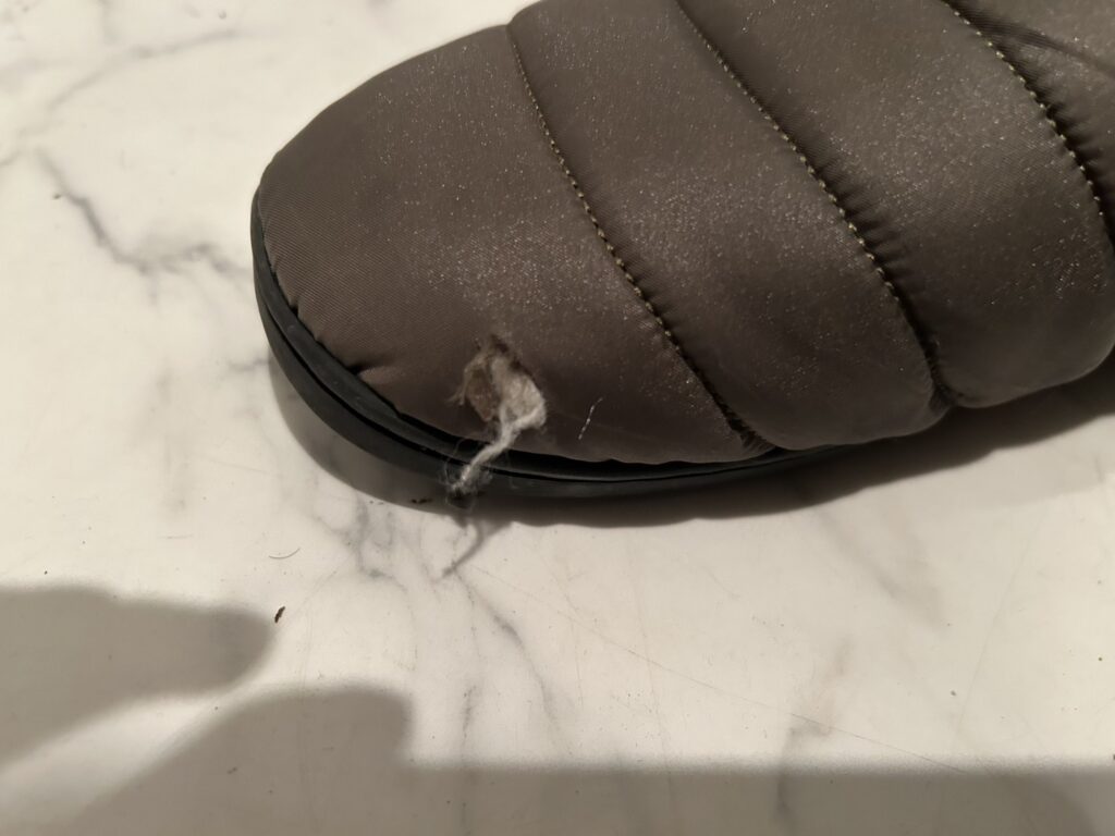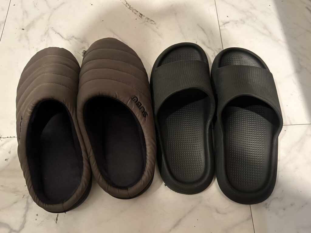 感想としては、まず暖かいです。この商品に出会うまでの私は、冬にコンビニに行くときなどは3COINSで購入した普通の夏用のサンダルを履いて出かけていました。(理由は靴を履くために靴下を履くのが面倒くさかったから笑)