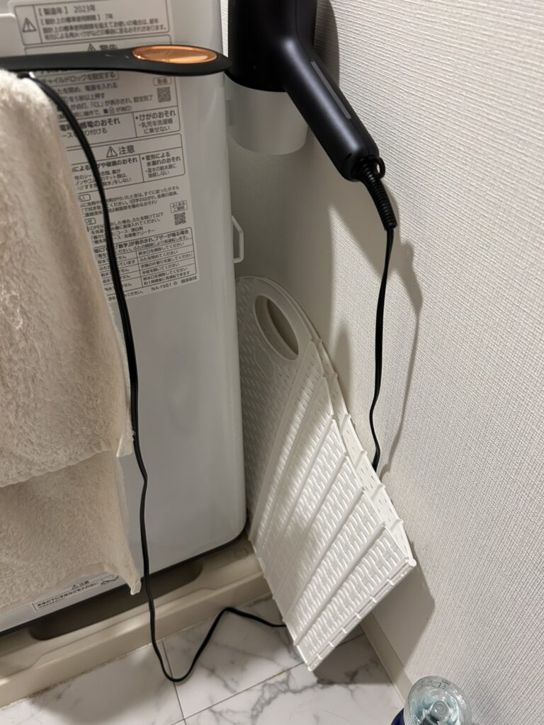 このように幅が5cmもあれば収納することが可能なので、洗濯機の横に少しスペースがある方や