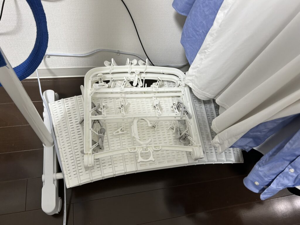 私は前回紹介したニトリのハンガーラックの下に普段置いていて、その上に下着を干すハンガーをしまっている。